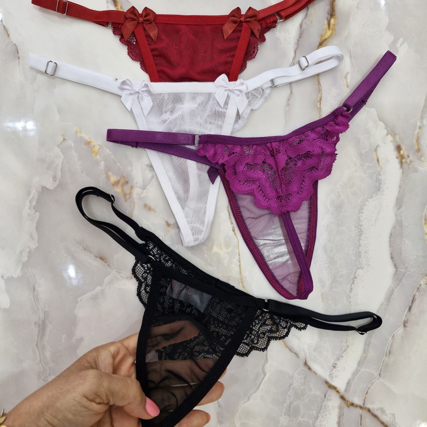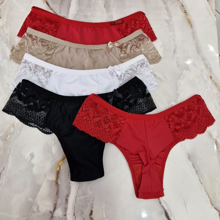 Conjunto de lingerie feminina com a calcinha fio duplo pala em renda
