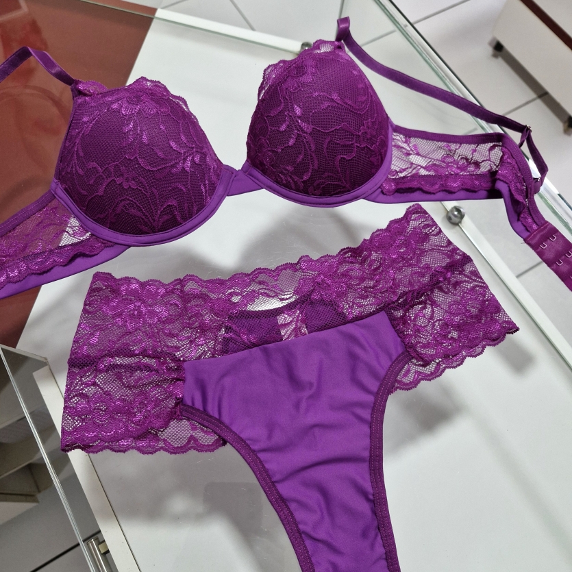 Conjunto de lingerie morado com soutien Abotoador Frontal