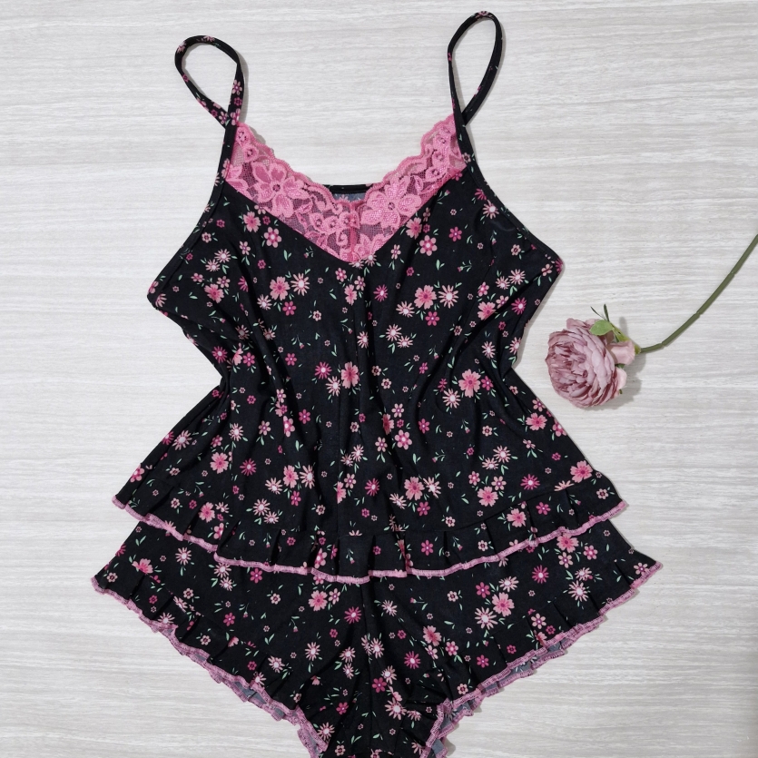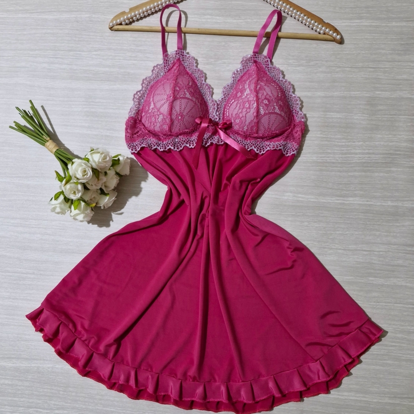 Babydoll de liganete lisa e detalhes em renda bicolor