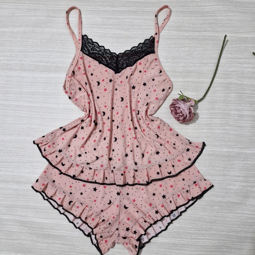 Baby doll básico feito com liganete estampada e detalhes em renda frozen
