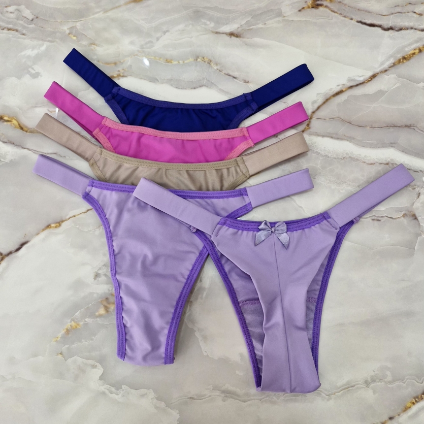 Calcinha fio duplo pala alta em renda bicolor, disponível em três cores