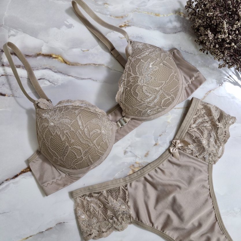 Conjunto de lingerie nudes com soutien Abotoador Frontal