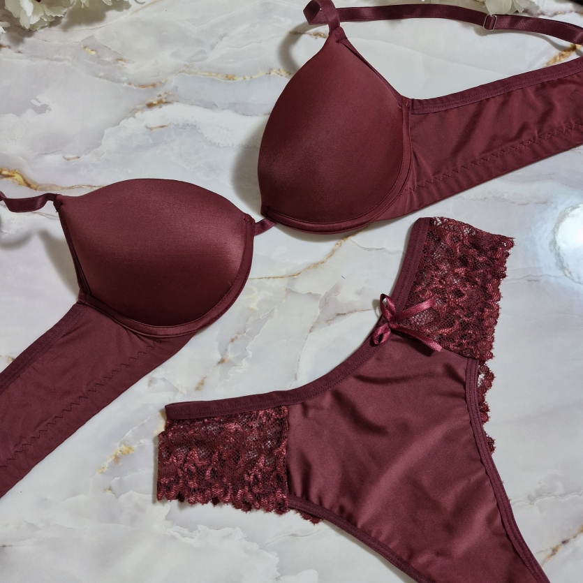 Conjunto de lingerie em microfibra e detalhes em renda rubro