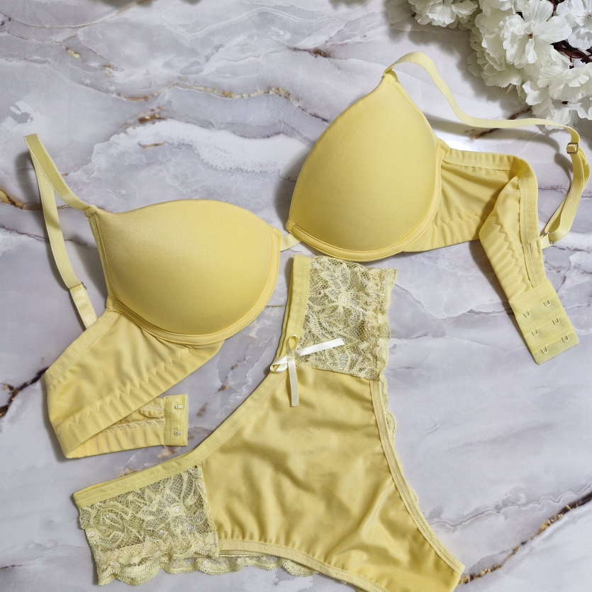 Conjunto de lingerie em renda com soutien de bojo triângulo