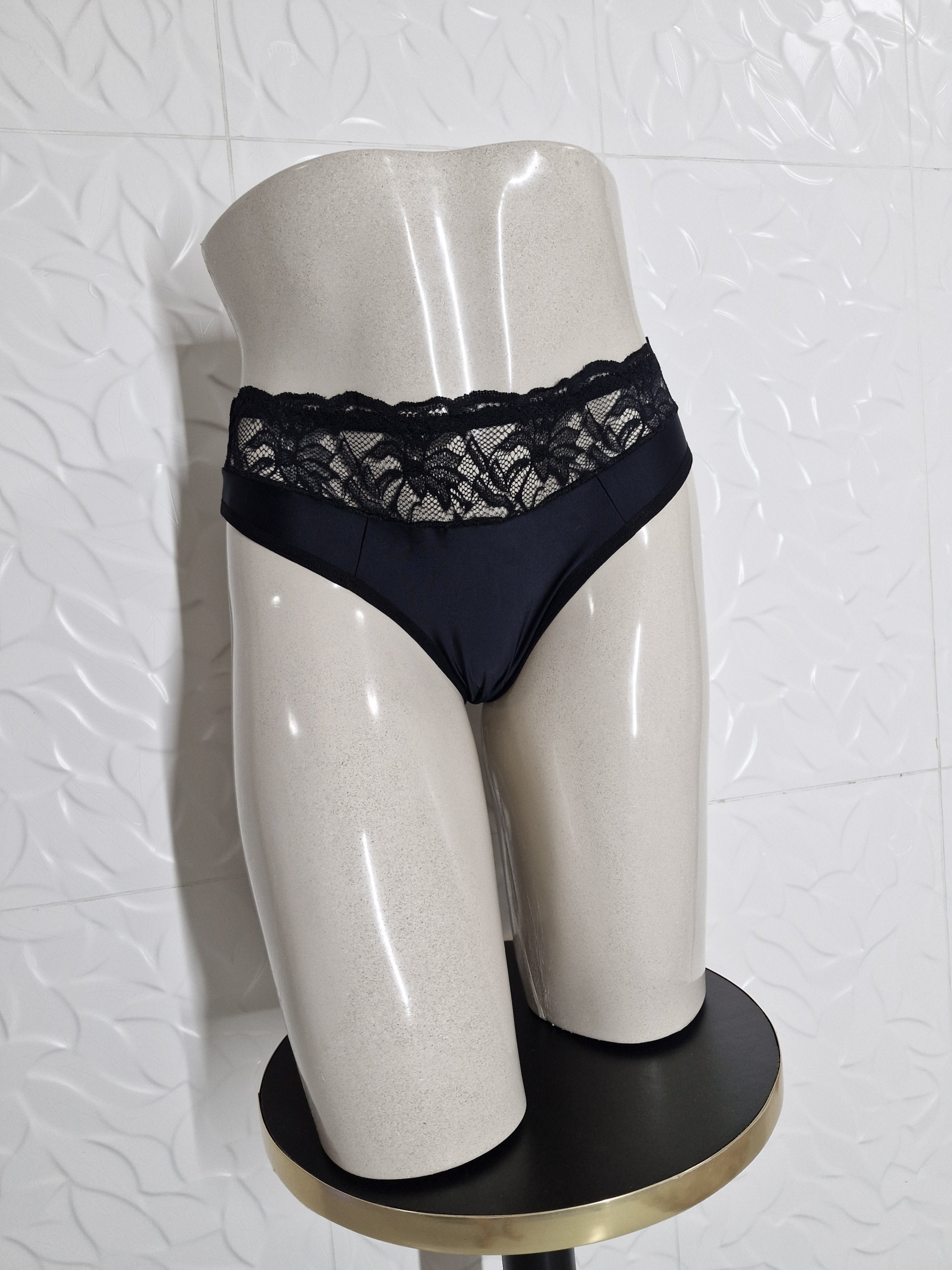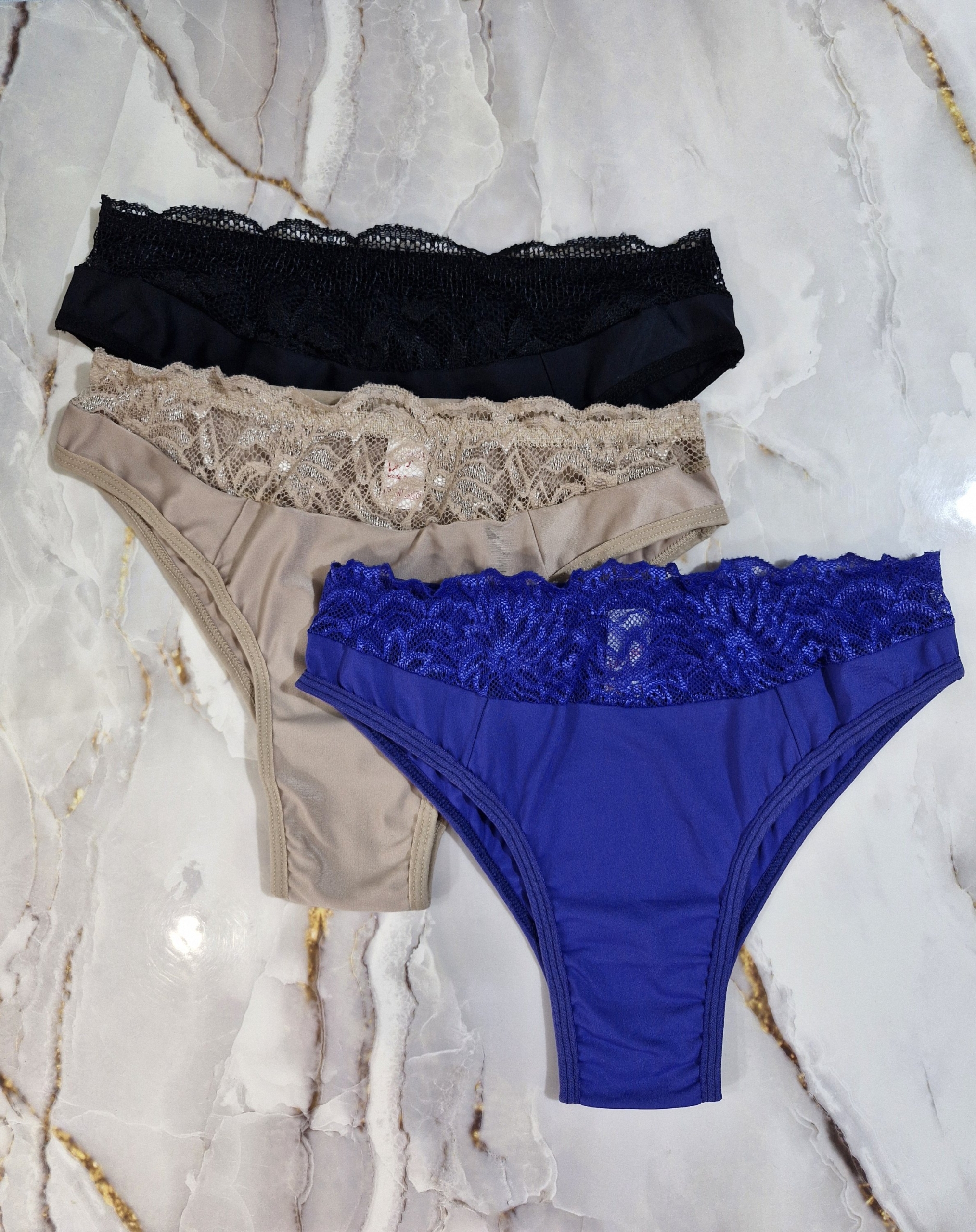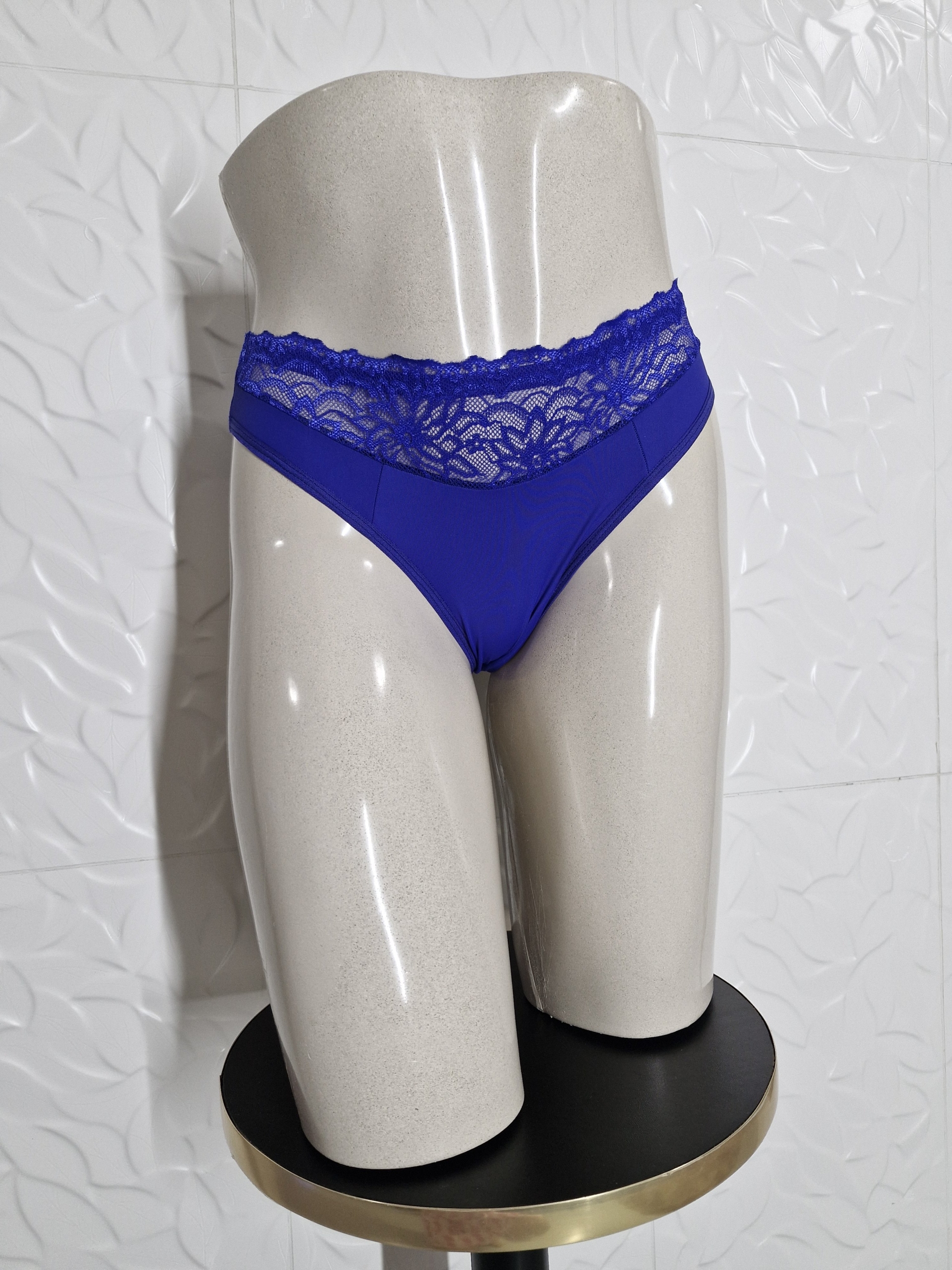 Calcinha pala frontal em renda, feita com poliamida renda, viés mexicano e forro 100% algodão.
