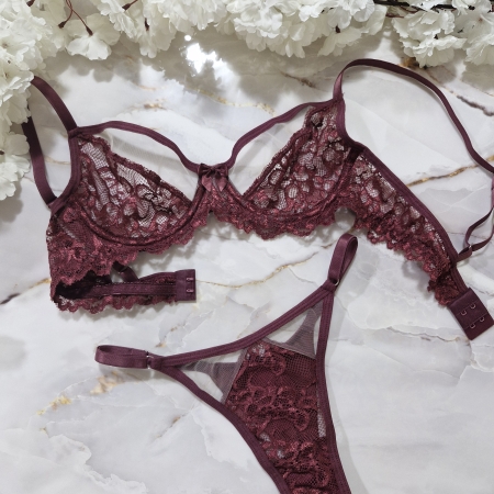 Conjunto de lingerie com bojo, poliamida, renda e guipure.